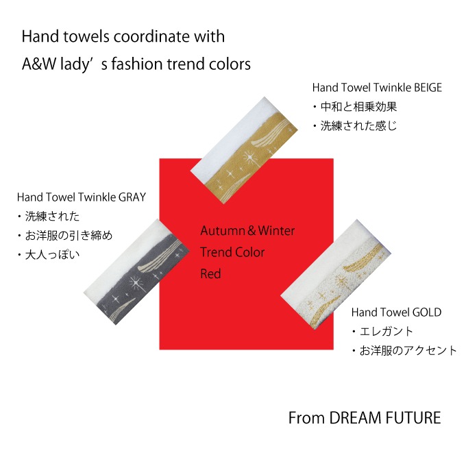 8月1日のご挨拶でも触れておりましたが、秋冬のレディーストレンドカラーに合わせたHand Towelのご提案をさせて頂きます。