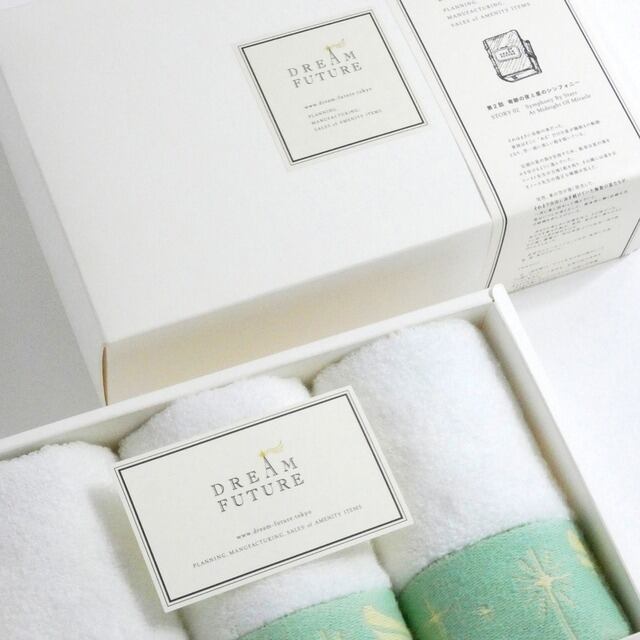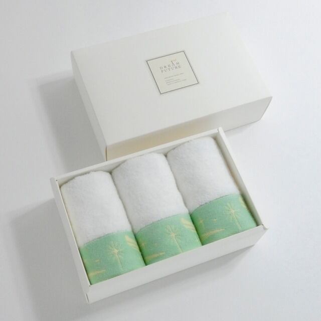 グログランリボン付きスペシャルWash Towel 3枚セットGREEN/GREEN/GREEN